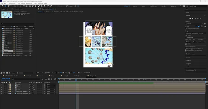 I then start by watching tutorials on YouTube to learn how to do animation for anime manga panels.