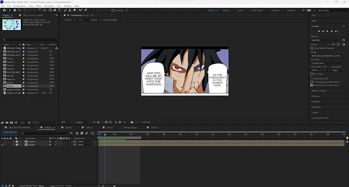 The project is about making an AR shark for a manga panel on Naruto Shippuden. To make that happen, I will have to use After Effects to create the animations and then export and make work with Meta Spark Studio and then in Meta Spark Studio will make an AR experience when the users scan the QR code on the manga page, the user will be able to open Facebook and watch the manga panel come to life and able to see the animation play.